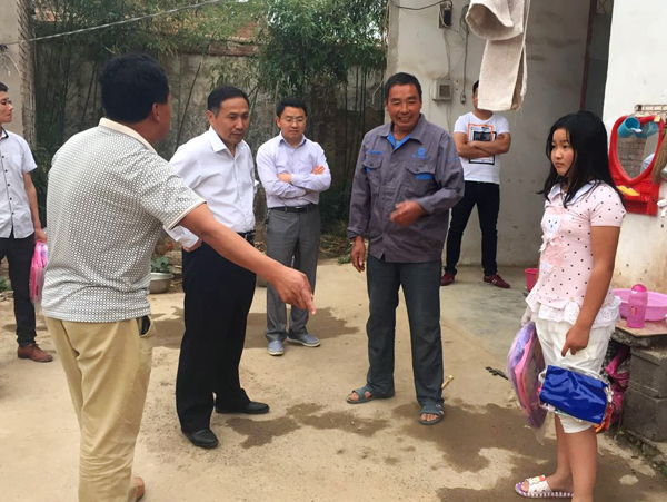 魏建华一行到村后首先给困难家庭儿童送上了新书包和文具,详细询问了解了留守儿童的学习和生活情况。
