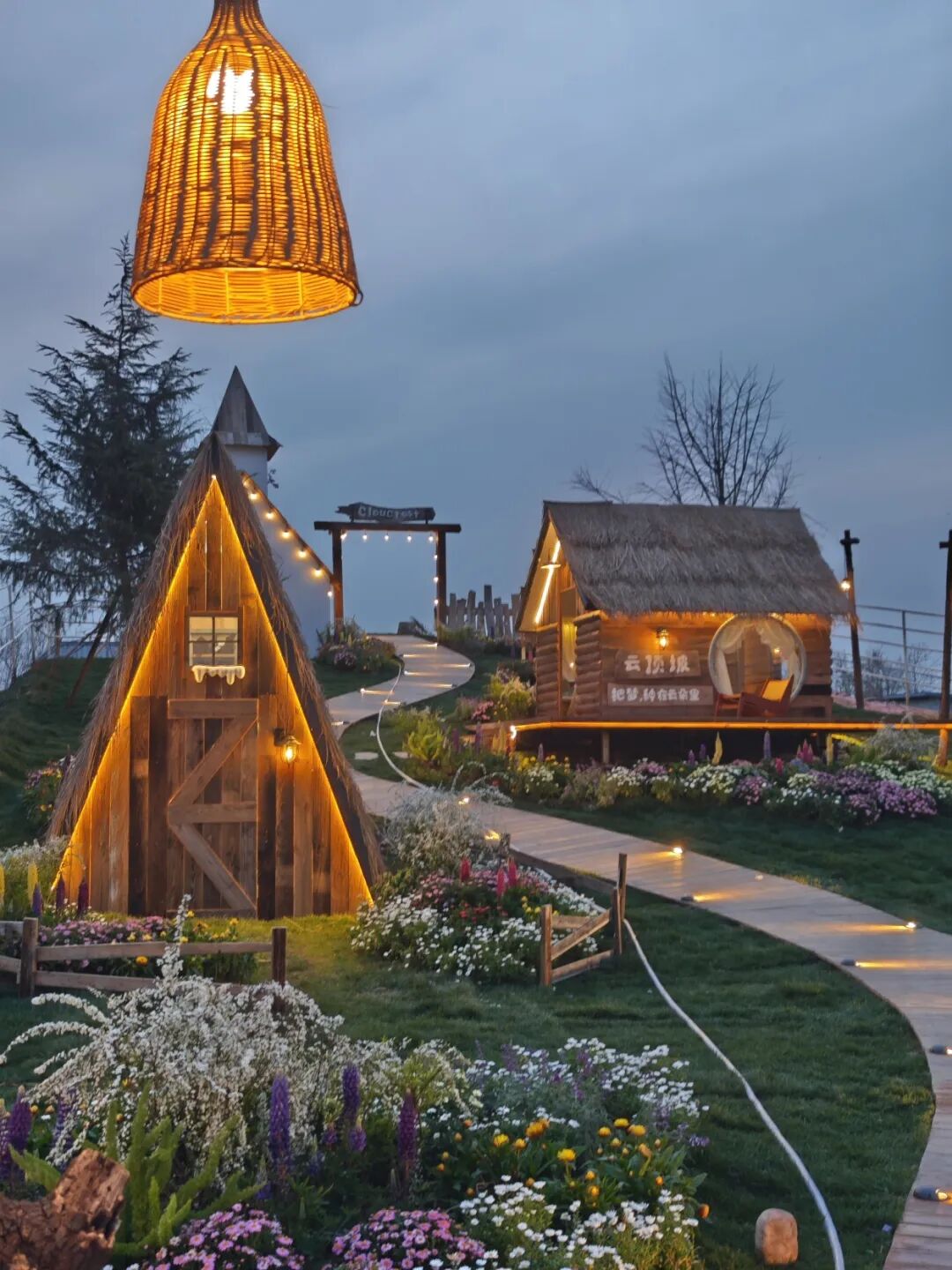 纤姿似蝶影重重,烟霞呈幻境,疑是到仙宫